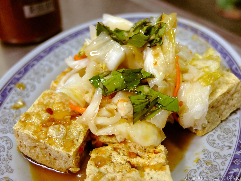 台東的臭豆腐都會配上九層塔,提昇香氣,和豆腐有給他搭說