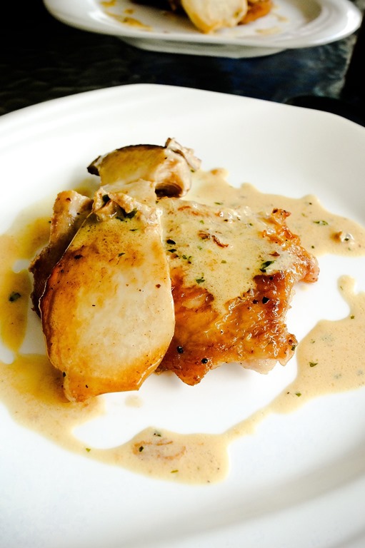 第四道是佐白醬的雞排和杏鲍菇