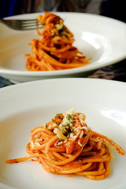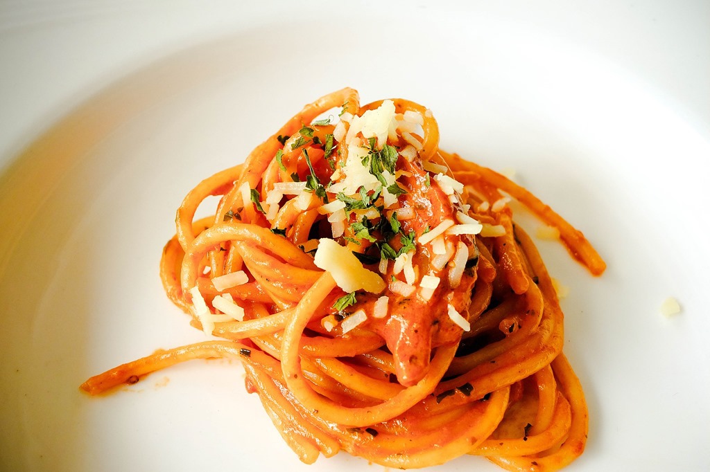 最後一道是最常見的紅醬義大利麵,但...這大概是我吃過排前幾名的麵了